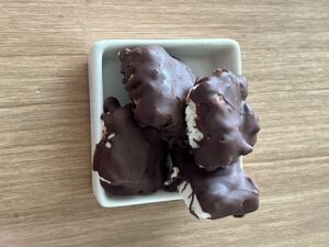 Bocaditos de Yogur griego, coco , chocolate y almendras