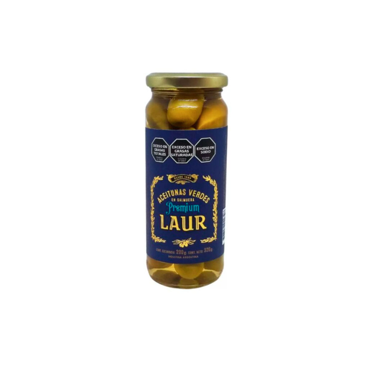 Aceitunas verdes en salmuera con carozo, de 320g, perfectas para ensaladas, tapas y diversas preparaciones culinarias.